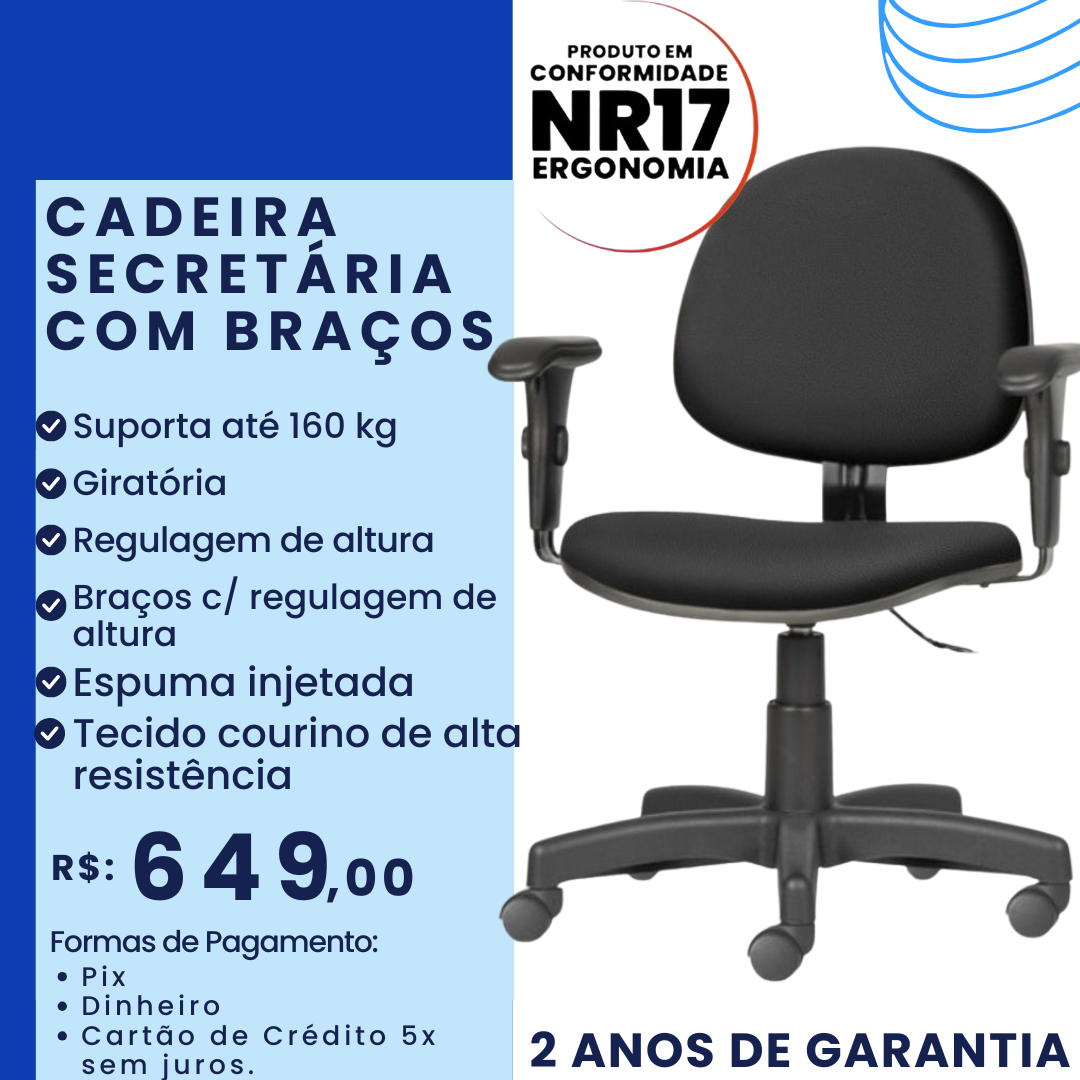 Cadeira Secretária c/ Regulagem de Braço